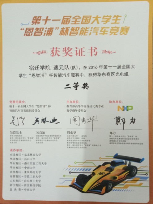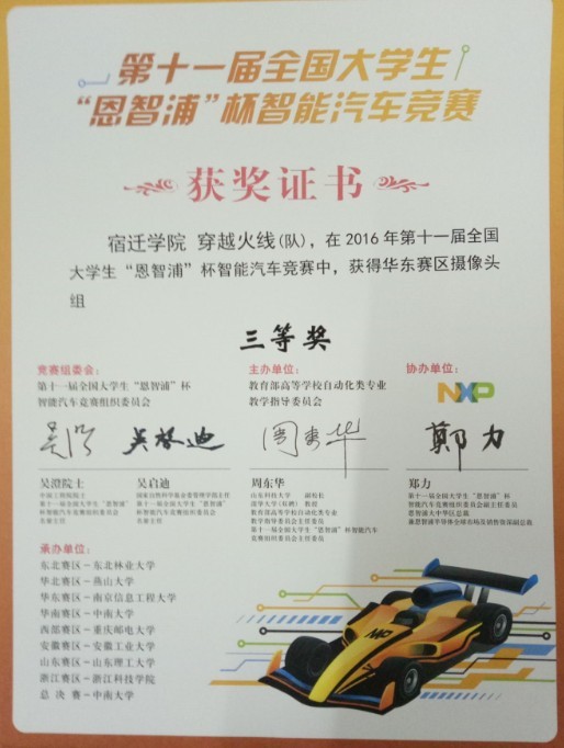 2016年全国大学生智能汽车竞赛中获华东区二等奖2项,三等奖2项。