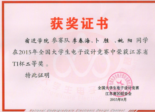 参赛学生:葛仕翰 陆卫刚 吴正 李春海 卜胜 姚阳带队教师:陆超