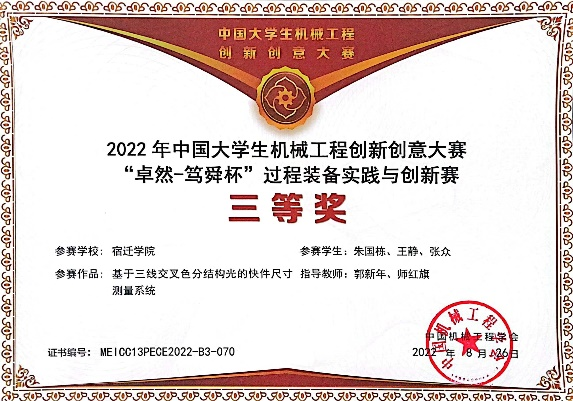中国大学生机械工程创新创意大赛三等奖