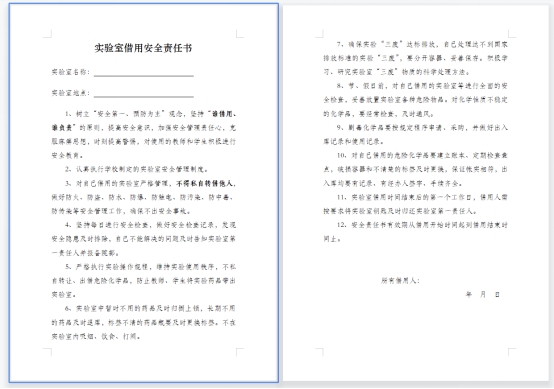 (1)自我责任明确,申请使用的过程中,对实验室的安全和管理负责;