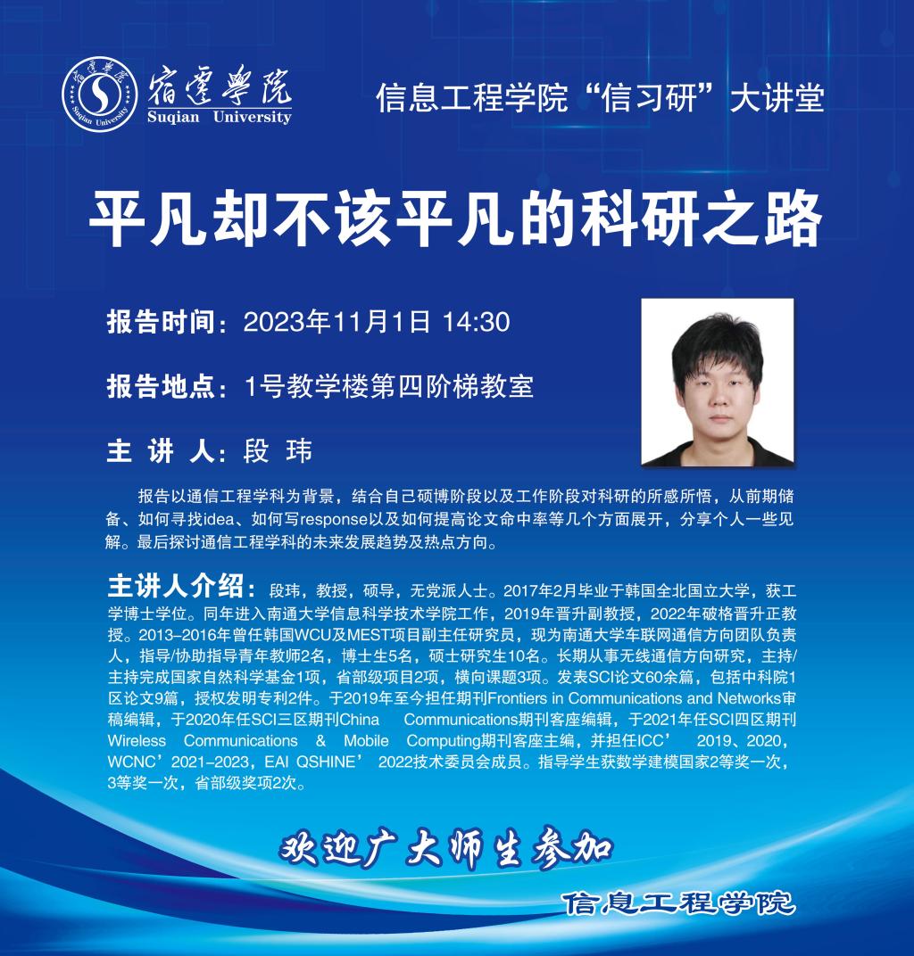 地址:江苏省宿迁市黄河南路399号 联系电话:0527-84202314 邮编:223800 江苏省宿迁学院信息工程学院 Email:jkx@squ.edu.cn
