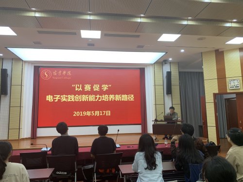 5月17日下午,中国矿业大学博士生导师袁小平教授应邀来院讲学,我院电子信息工程系全体师生聆听了袁小平教授“以赛促学,电子实践创新能力培养新途径”学术讲座。讲座由副院长陈林主持。