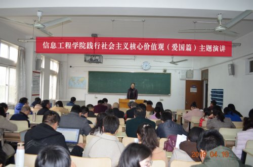 4月10日下午,我院在1104教室举办了践行社会主义核心价值观(爱国篇)主题演讲,院长李国栋,专任教师陆超、张乾燕、陈芬,思想政治辅导员夏丹、王甜甜等发表了主题演讲,全体院领导和教职工聆听演讲。主题演讲由党总支副书记(主持工作)、副院长万娟主持。