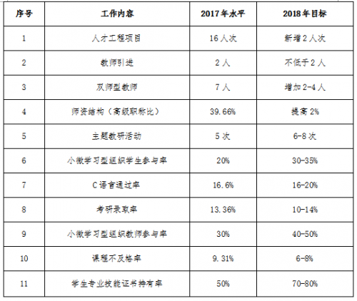 全面学习贯彻习近平新时代中国特色社会主义思想,紧紧围绕应用技术型人才培养目标,细化落实学校2018年的各项工作任务,继续以“院风”、“教风”、“学风”建设为先导,常规不松懈,创新不停歇,狠抓教师专业团队建设和小微学习型组织发展,确保以专业为标志的师生联动组合体正常运行,在打造“一个专”、“四个一”、“校企深度合作”的实践中,和谐奋进,努力做各条块工作的排头兵。