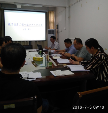 7月5日上午9:00信息工程学院在院310会议室召开了电子信息工程专业分类人才培养实施方案论证会。教务处乔燕副处长,信息工程学院全体院领导、部分系主任以及电子工程系所有教师参加了论证会。