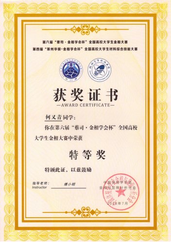 7月21,第六届“蔡司.金相学会杯”全国高校大学生金相大赛暨第四届“莱州华银.金相学会杯”全国高校大学生材料综合技能大赛在桂林电子科技大学举行,我院材料专业何又青、张娜娜和李向成三位同学分别获得金相大赛特等奖、一等奖和二等奖,张容国同学获得材料综合技能大赛二等奖。傅小明和孙虎两位老师获得优秀指导教师。