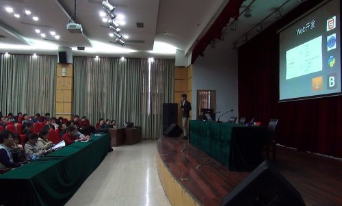 其次由在企业工作的优秀毕业生11通信张乐然和12计本冯涛结合自身实例,谈大学期间参与实践项目的经验提升自我的重要性,同时介绍了如何在大学期间利用四年的时间,确立目标为以后的就业做准备。