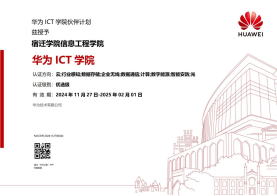 11月27日,信息工程学院收到喜讯,学院“认证级华为ICT学院”荣升为“优选级华为ICT学院”。这次升级不仅标志着信工院与华为公司在信息通信技术(ICT)人才培养领域的深度合作取得了显著成效,也代表了信工院教育教学改革迈上了新的台阶。
