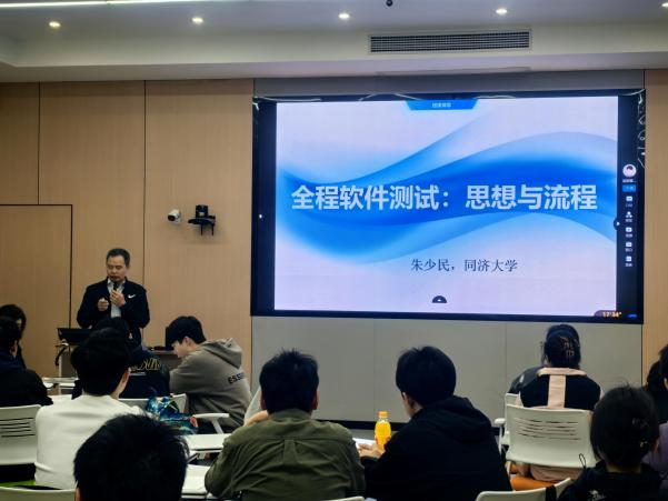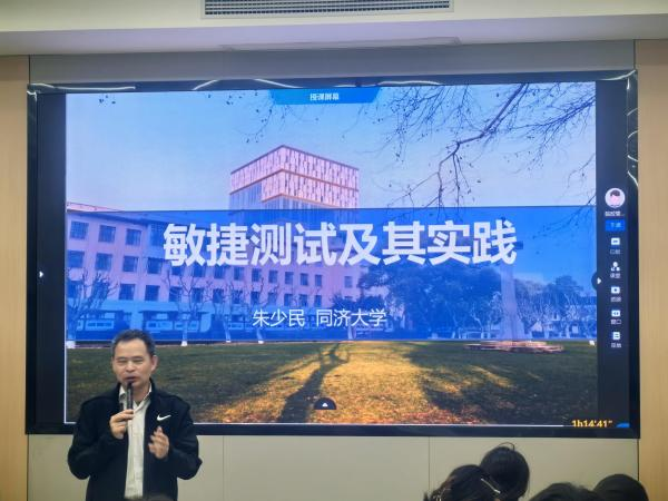 朱少民老师是同济大学特聘教授,此次受邀前来宿迁学院授课,旨在分享他在软件测试领域的丰富经验和深刻见解。在课堂上,朱教授详细阐述了全程软件测试的思想与流程,强调了软件测试在整个软件开发过程中的重要地位。