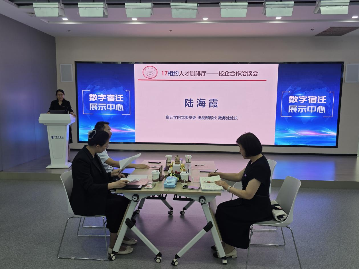 2025年6月17日下午,宿迁学院信息工程学院与中国电信宿迁分公司联合举办的“17相约人才咖啡厅”——“AI赋能高教 数字驱动创新”校企合作洽谈会在宿迁电信数字宿迁展厅成功举行。此次活动旨在深化产教融合,推动AI技术与高等教育的深度融合,为宿迁数字经济发展注入新动能。