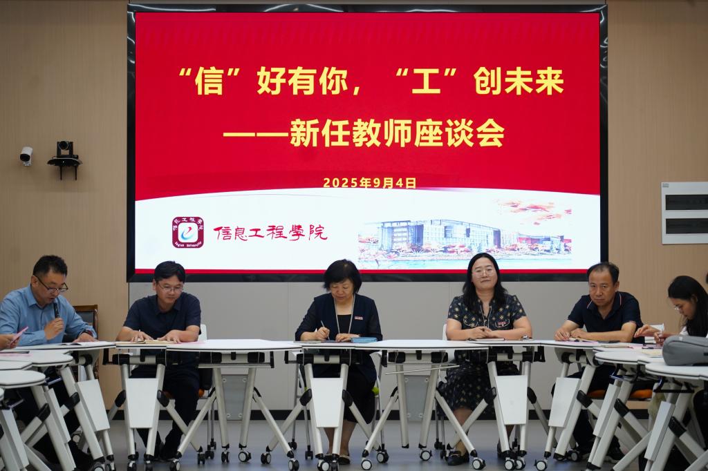 座谈会以“信好有你,工创未来”为主题,旨在欢迎新教师加入信息工程学院大家庭,帮助大家快速融入学院环境,明确发展方向,增强归属感与使命感。