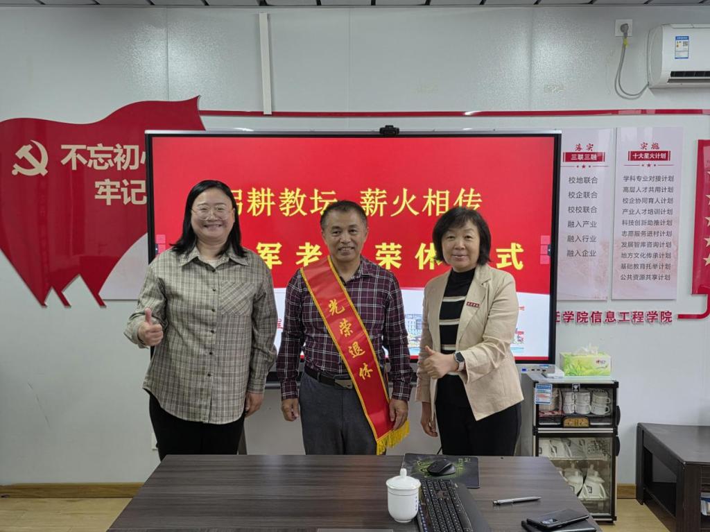 2025年9月25日下午,信息工程学院在6214会议室隆重举行了“躬耕教坛 薪火相传”赋能中心王学军老师欢送会。活动由学院党委副书记、工会主席吴垚同志主持,学院领导班子成员、赋能中心教师代表共同参与。