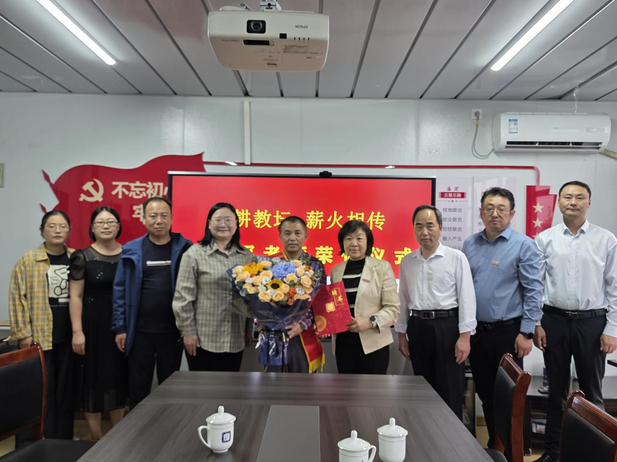 王学军老师随后发表感言,回顾了自己多年的教学生涯,表达了对学院及同事的感激之情。在庄重而温馨的氛围中,张岩院长向王老师颁发“银龄导师”聘书,万娟书记为其赠送了鲜花和荣休纪念品。最后,全体与会人员合影留念,欢送会在祝福声中圆满落幕。