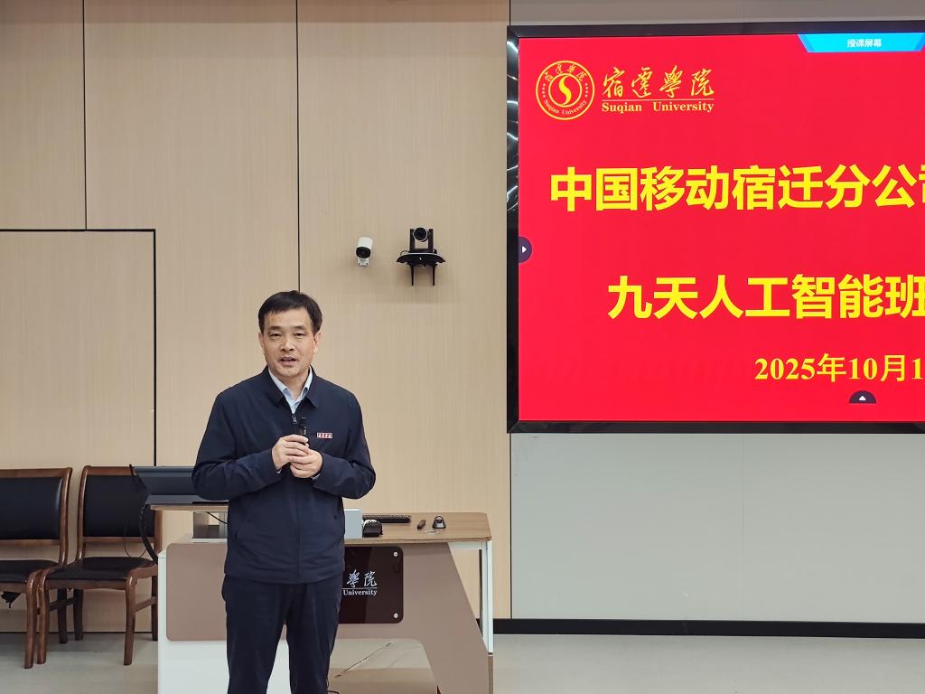 中国移动宿迁分公司党委书记、总经理郑建兵在致辞中表示,作为扎根地方、服务地方的大型央企,中国移动宿迁分公司始终秉持开放合作、回馈社会的理念。此次与宿迁学院的合作是一次意义深远的“双向奔赴”,中国移动拥有丰富多样的业务应用场景和先进的人工智能技术平台,非常乐意将这些资源优势转化为人才培养优势,为同学们提供贴近产业前沿的学习环境与实践舞台。他希望通过此次深度合作,能够共同培育出一批理论基础扎实、实践能力突出、符合人工智能产业发展需要的高素质应用型人才,为服务地方数字经济高质量发展贡献力量。开班仪式结束后,郑书记还为九天人工智能班同学做了“如何快速拥抱AI引发的数智化时代加速到来”讲座。