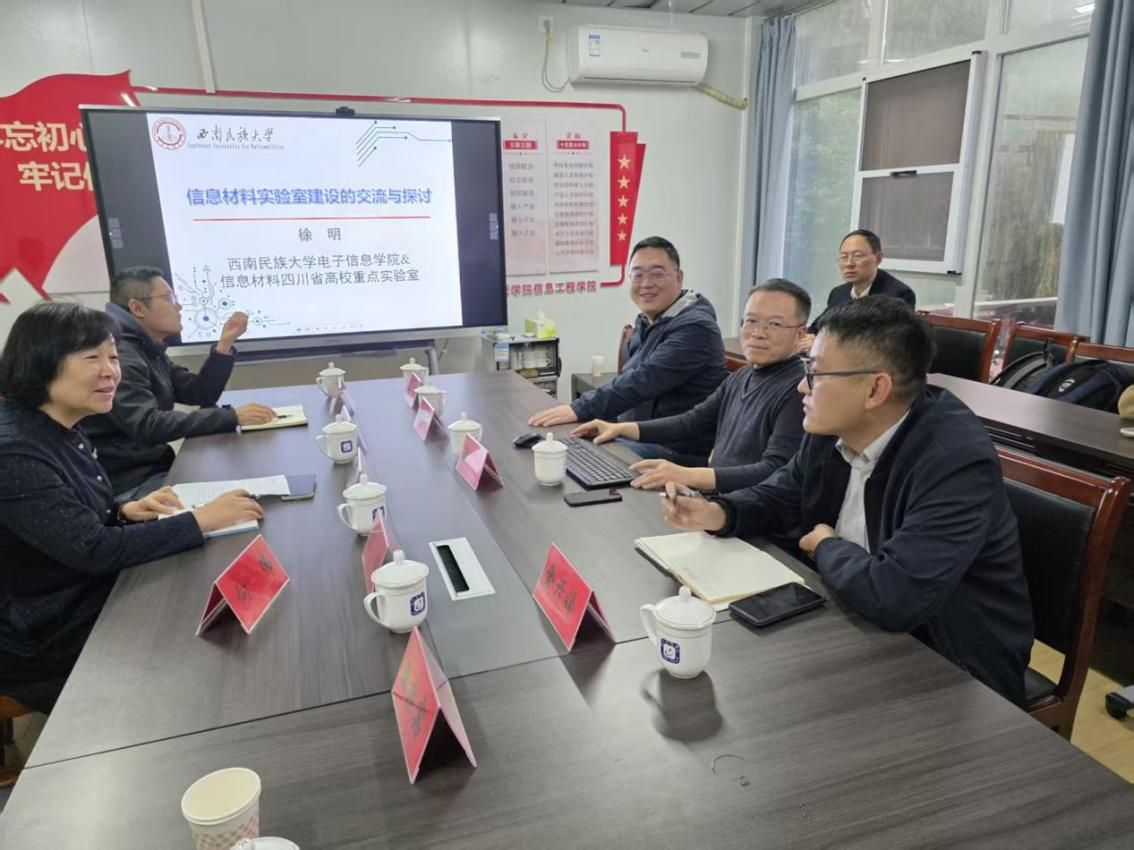 在交流第二阶段,西南民族大学电子信息学院徐明教授作了《信息材料实验室建设交流与探讨》的学术报告,系统介绍作为四川省高校重点实验室的发展历程、与学科建设的关联,以及在科学研究、人才培养与服务地方经济等方面的成果与经验。此外,他还与宿迁学院师生深入探讨推动实验室创新发展的新思路与方向。