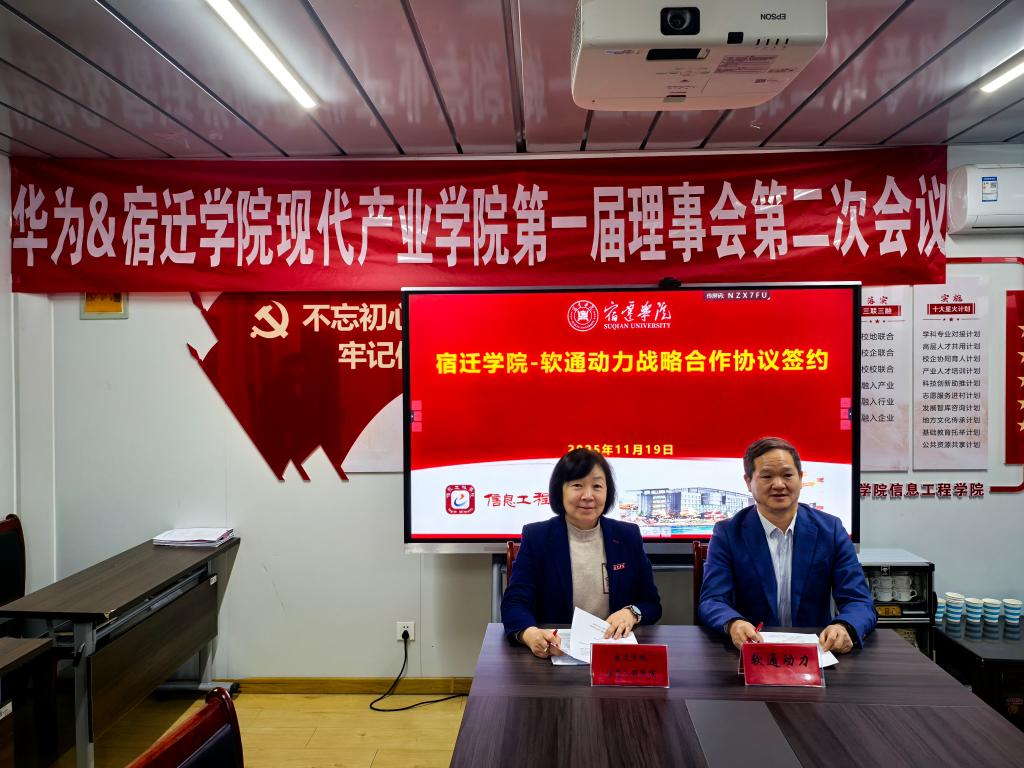 2025年11月19日,华为&宿迁学院现代产业学院第一届理事会第二次会议在宿迁学院信息工程学院成功召开。本次会议旨在总结产业学院近期建设成果,深化校企合作内涵,并规划下一阶段的发展路径。华为江苏(上海)政企大客户与地市服务部院校解决方案总监孙婷婷、北京软通动力教育科技有限公司副总经理江片宏、南京软通动力信息技术服务有限公司总经理黄海音、江苏万和系统工程有限公司副总经理苏正坤等受邀参加了会议。信息工程学院领导班子成员、骨干教师代表共同参会。会议由信息工程学院院长张岩主持。