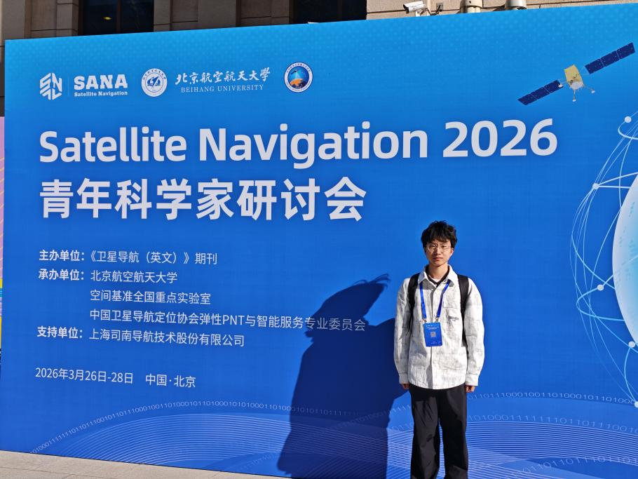 近日,由顶级SCI期刊《卫星导航(英文)》(Satellite Navigation)主办,北京航空航天大学、空间基准全国重点实验室、中国卫星导航定位协会弹性PNT与智能服务专业委员会承办的Satellite Navigation 2026青年科学家研讨会在北京隆重召开。我校信息工程学院陈佳佳老师指导,本科生何金峰、郑德悦等同学共同完成的学术成果《面向城市峡谷行人导航的GNSS/PDR双重置信度自适应融合与在线步态标定》,从全国众多高水平投稿中脱颖而出,成功入选大会Poster展示环节,成为本次大会唯一一项入选的本科生科研成果,与北京航空航天大学等国内顶尖高校、科研院所的青年科学家团队同台交流,实现了我校在卫星导航领域国际高水平学术平台上的重大突破。