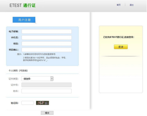 一、注册ETEST通行证