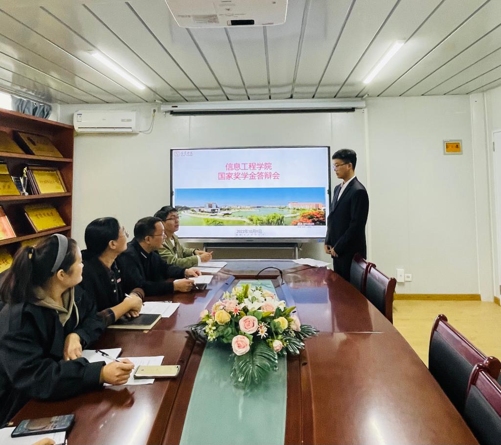 为积极引导信工青年学生树理想,铸信念,强本领,担使命,发挥典型的示范引领作用,带动信工学子汲取榜样力量,营造优良学风,以良好的精神风貌迎接党的二十大的胜利召开。10月9日上午,信息工程学院孙承诺,宋思璇,沈子繁3名同学参与2022年国家奖学金候选人答辩会。出席此次答辩会的评委有信息工程学院党委副书记(主持工作)万娟,党委副书记肖庆东以及全体辅导员。