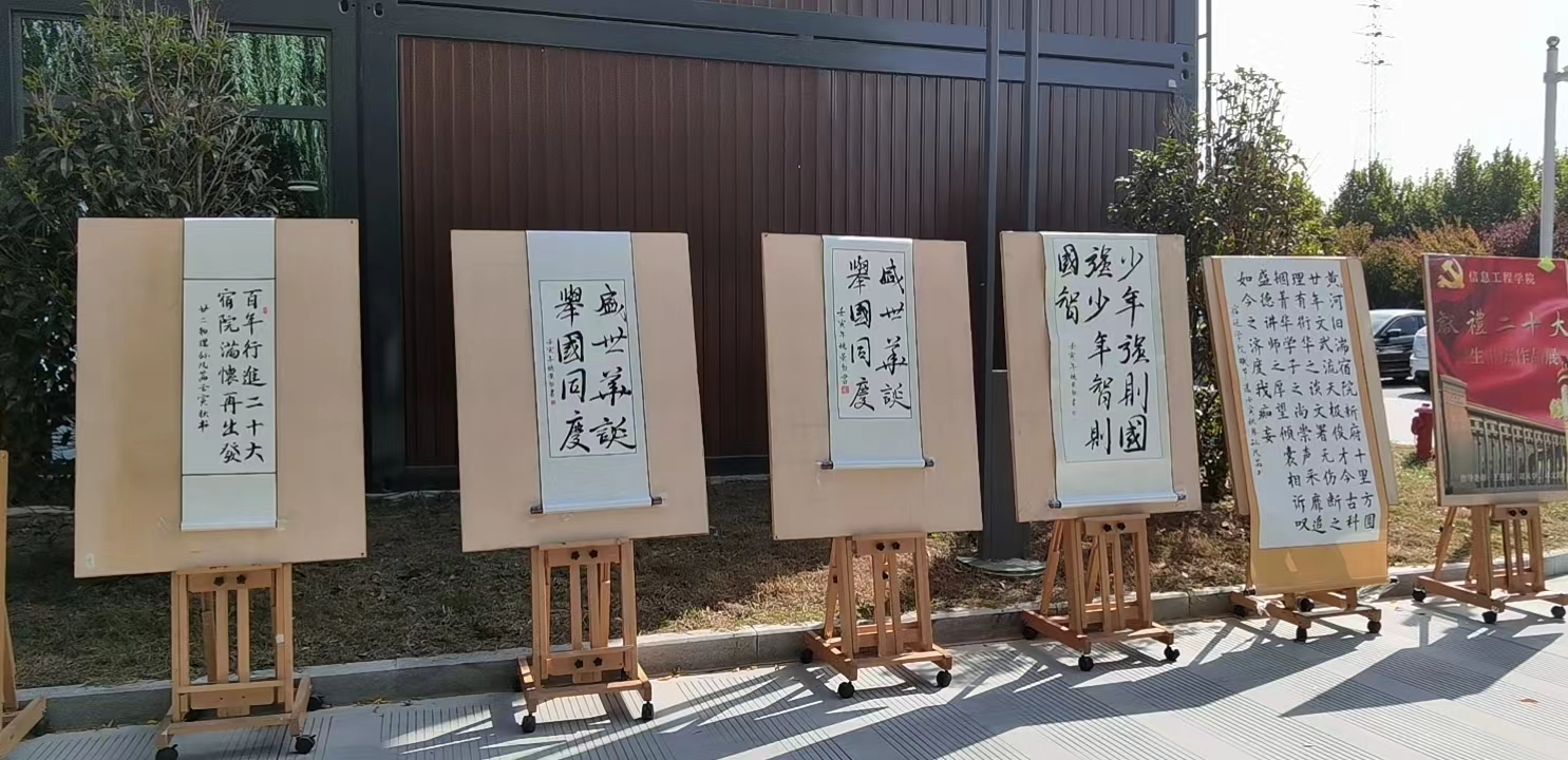 10月16日上午,党的二十大胜利召开,我院学子用书法作品展献礼,表达新时代大学生的爱党爱国爱人民之情。