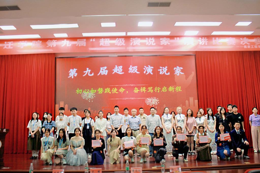 为丰富校园生活,传播正能量,提高大学生的讲演能力,6月2日晚,信息工程学院举办宿迁学院第九届“超级演说家”决赛。来自管理学院、文理学院、信息工程学院、建筑工程学院、外国语学院、艺术与传媒学院的8位选手,按照抽签顺序依次登台,分别围绕学习贯彻党的二十大精神、奋斗正青春、强身健体迎接十九届亚运会等主题,或激情昂扬侃侃而谈,或行云流水娓娓道来,澎湃处让人振奋,审问时发人深省,充分展示了青春风采。信息工程学院曹志成老师作为评委代表,对本次比赛进行了精彩的点评。
