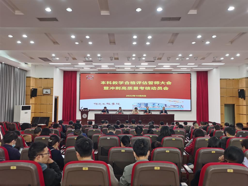 决战决胜本科教学工作合格评估已经进入“临门一脚”关键阶段,为更加精准精细精致做好“迎评”工作,10月8日上午,信息工程学院召开“迎评”誓师大会暨冲刺高质量考核动员大会。