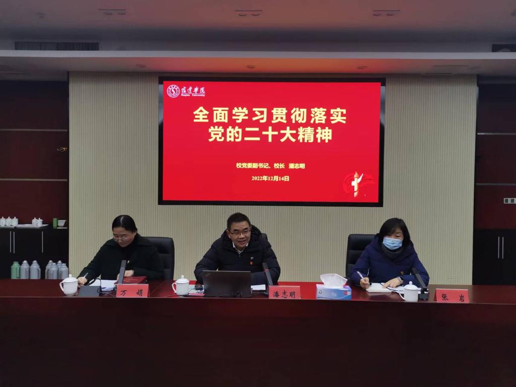 根据校党委统一安排,12月14日下午,校党委副书记、校长潘志明为我院全体教职工宣讲党的二十大精神。