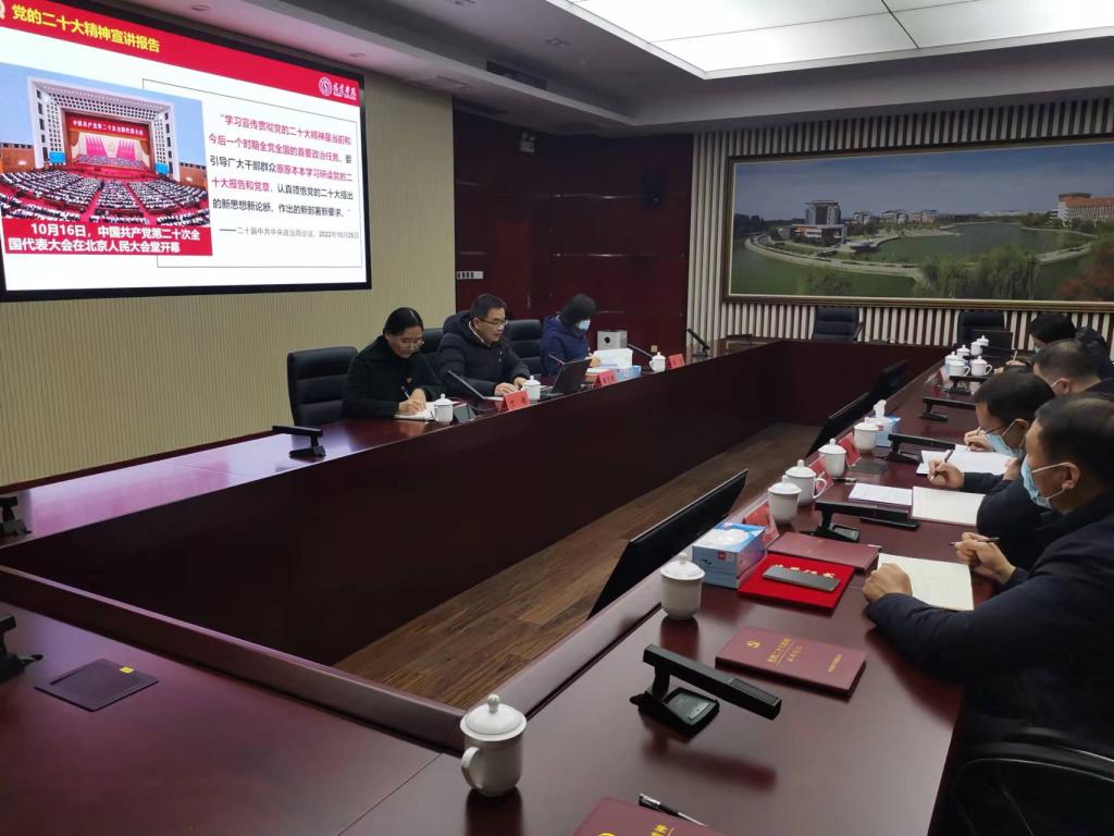 潘志明校长强调,学习宣传贯彻党的二十大精神是当前和今后一个时期的首要政治任务。要原原本本学习研读党的二十大报告和党章,认真领悟党的二十大提出的新思想新论断、作出的新部署新要求。