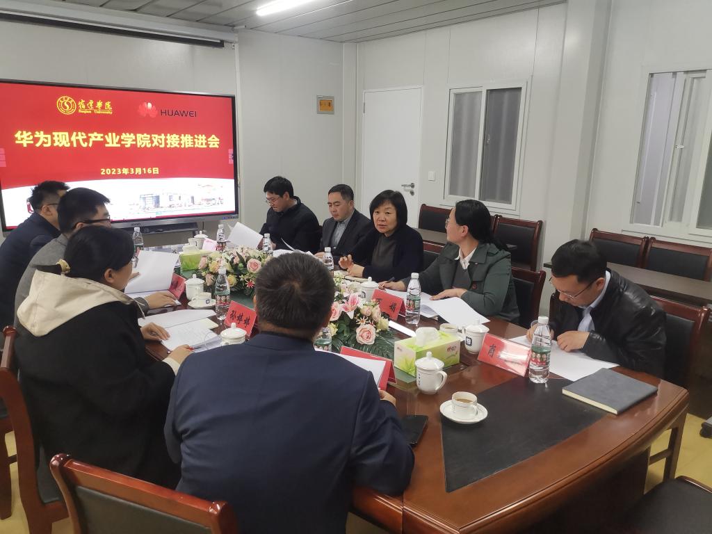 为尽快项目化落实宿迁学院与华为技术有限公司签约仪式精神,务实推动校企合作、产教融合、科教融汇、协同育人,3月16日下午,宿迁学院信息工程学院全体领导班子成员与华为技术有限公司全球培训中心江苏区域教育经理孙婷婷一行,对《宿迁学院华为现代产业学院建设方案》进行深入交流商讨。校企双方重点针对创新ICT人才培养模式、开发校企合作课程、共建ICT实践基地、共建高水平教师队伍、共建产教科教双融合基地、开展国际交流、完善管理机制等具体事项坦诚交换了意见。