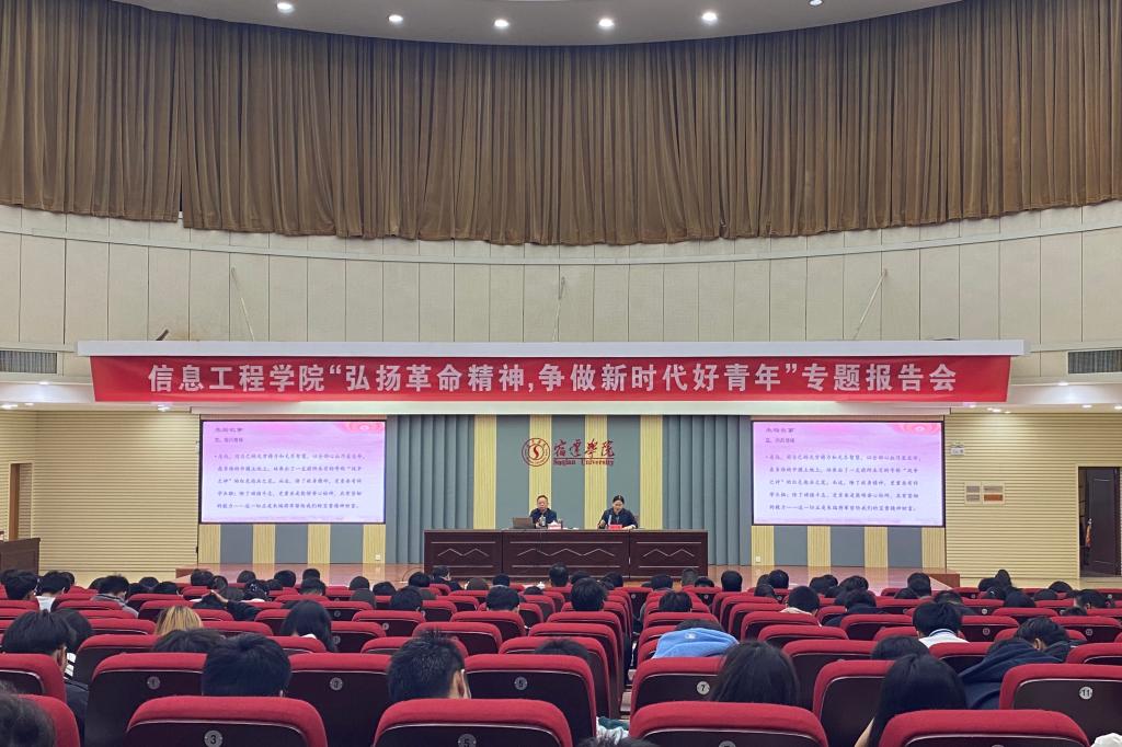 为深入学习宣传贯彻党的二十大精神和习近平总书记在瞻仰延安革命纪念地时重要讲话精神,加强爱国主义教育,弘扬革命精神,传承红色基因,汲取奋进力量,11月2日晚,信息工程学院开展“弘扬革命精神,争做新时代好青年”教育活动。院党委副书记(主持工作)万娟主持活动,院党委副书记肖庆东和全体辅导员、大一新生参加活动,