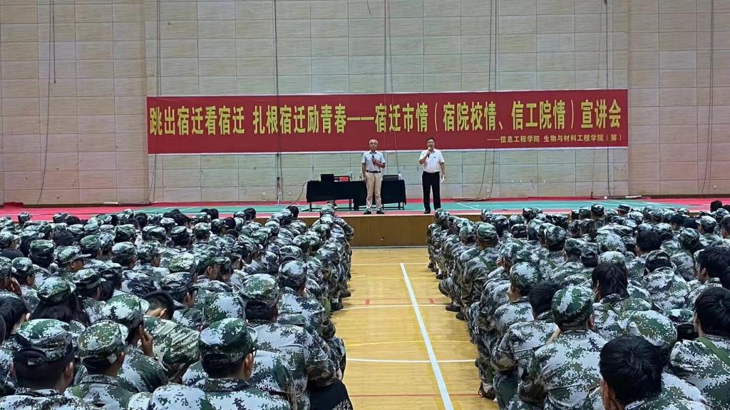 9月13日晚,学校体育馆内灯火通明、掌声阵阵,信息工程学院(生物与材料工程学院(筹))1000余名大一新生聆听主题为“跳出宿迁看宿迁·扎根宿迁励青春”的宿迁市情(校情、院情)宣讲。
